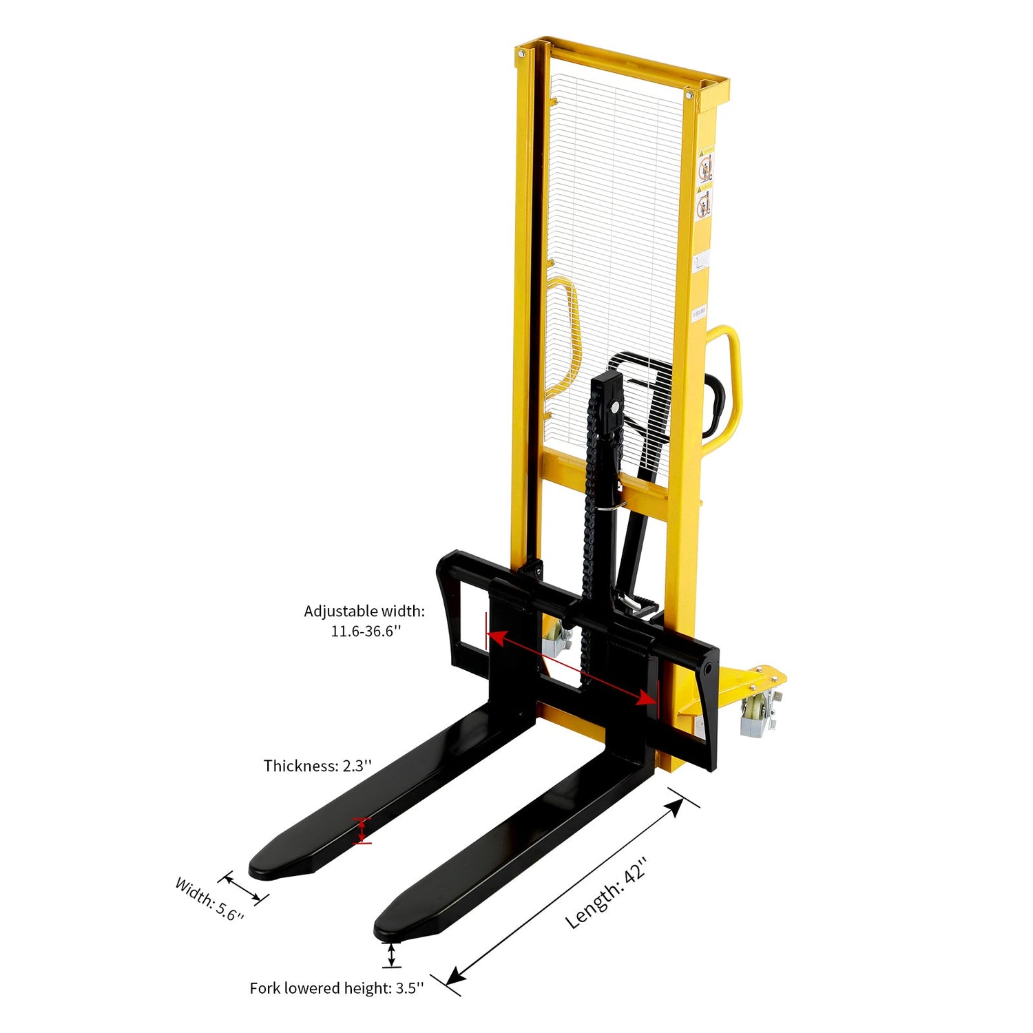 Empuje o tire del apilador manualmente para mover cargas pesadas. - Descarga:
