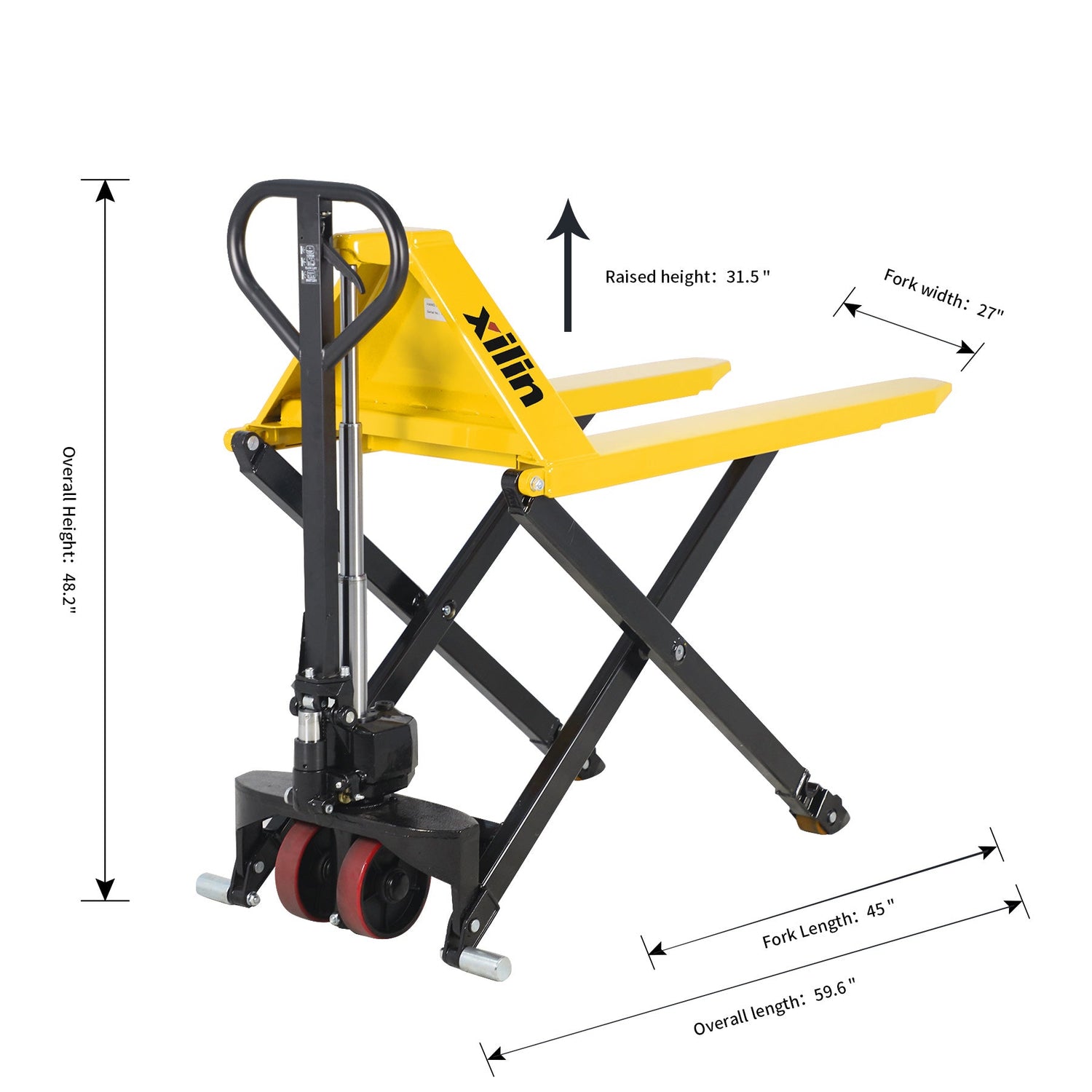 Carretilla elevadora de tijera manual de gran elevación Xilin, capacidad de 2200 libras, 45″ de largo x 27″ de ancho, horquilla JF, oferta de paquete
